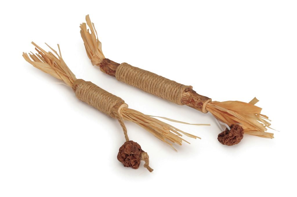 Cat toy – Matatabi – Stick with jute and straw rope 2 models, approx. 22cm, 6pcs