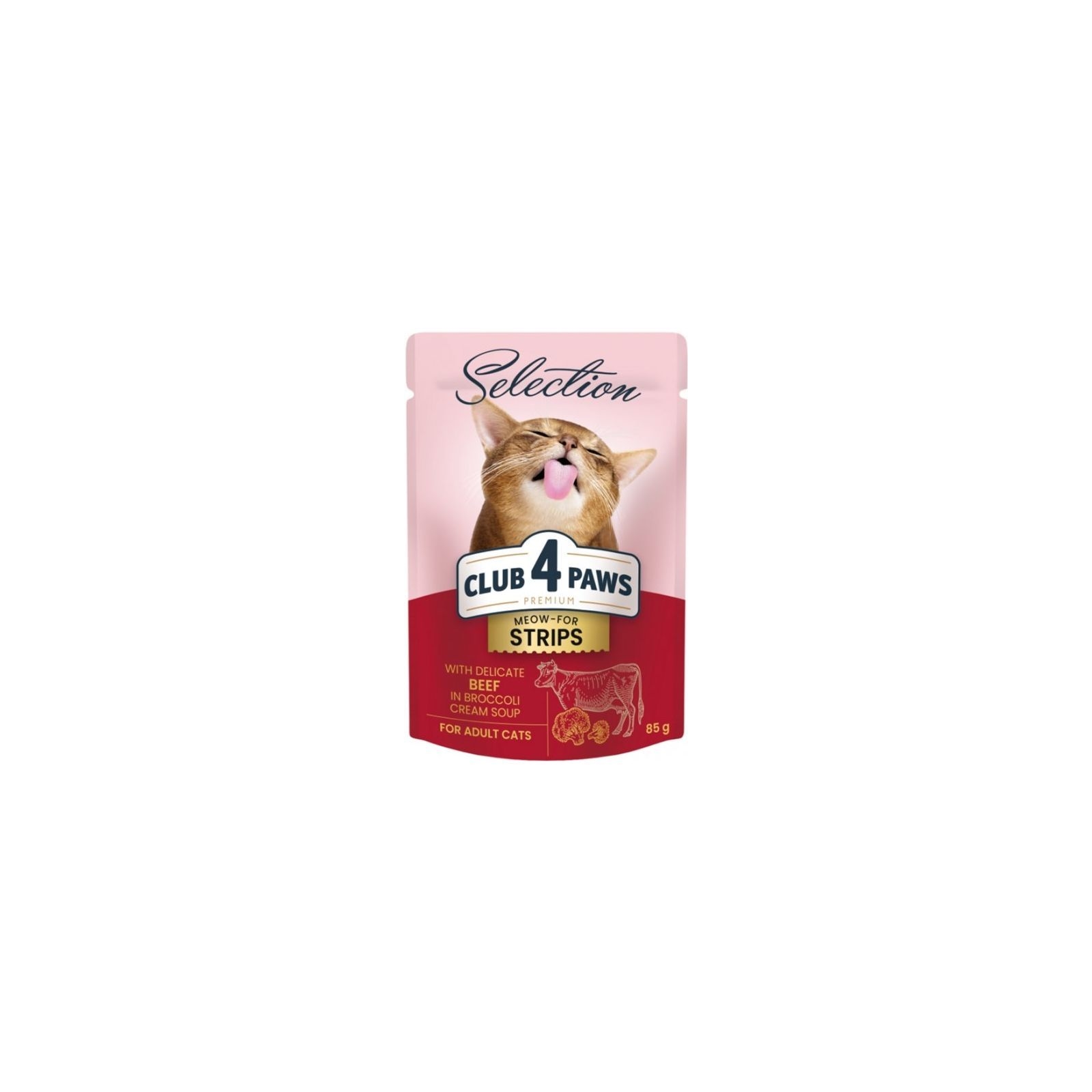 CLUB 4 PAWS Premium Strips with beef in broccoli cream soup. 85GR