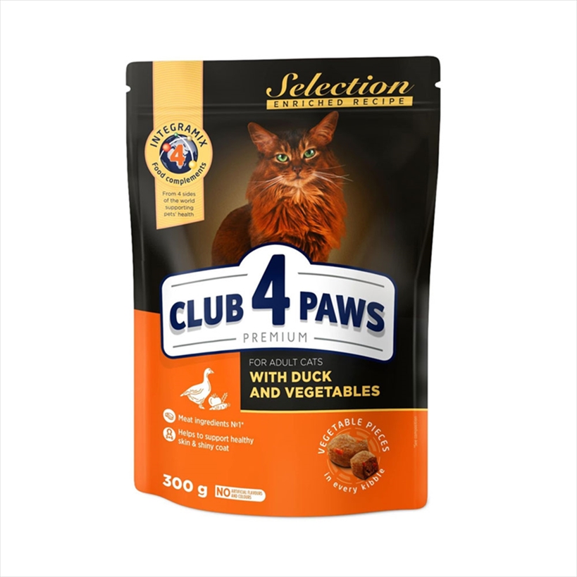 CLUB 4 PAWS Premium With duck and vegetables. Сomplete dry pet food for adult cats,300GR