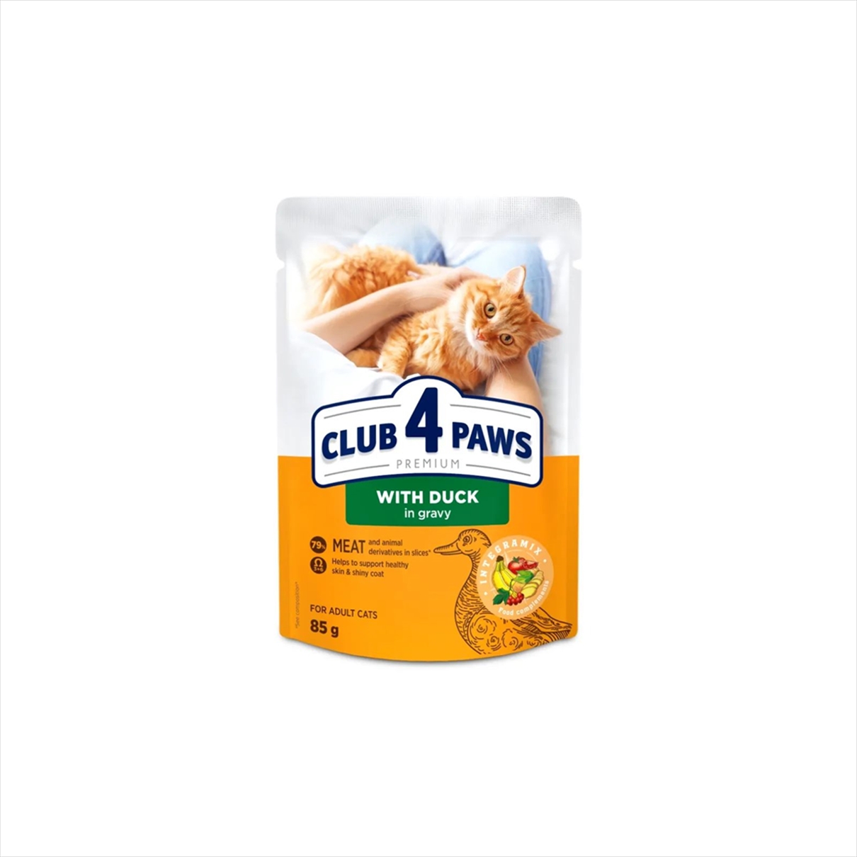 CLUB 4 PAWS With DUCK in gravy. Сomplete canned pet food for adult cats, 85gr