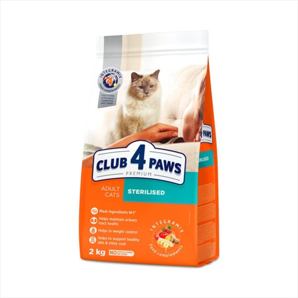 Food should be introduced into the diet gradually at least during the first 5 days. Provide the animal with constant access to clean and fresh drinking water. Individual feeding rates for the animal may vary, depending on age, breed, activity level and environment. Combine feeding with Club 4 Paws canned food for adult cats. For more detailed proportions, see photo 3 and on the packaging.