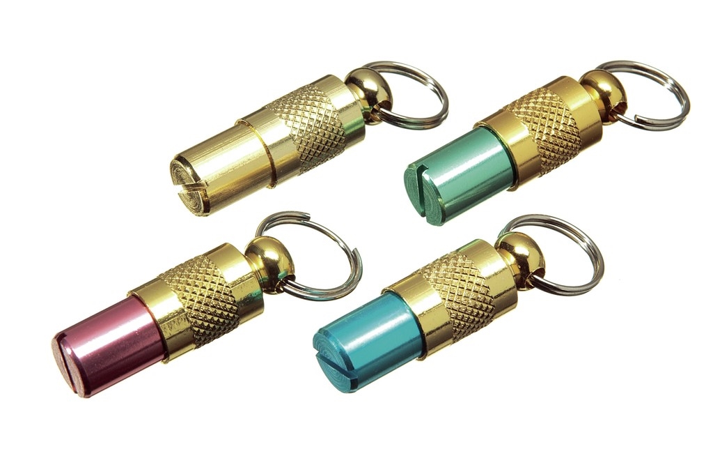 Colourful metal address holder for collar with ring. Inside the pendant there is a small note where you can write down your address and phone number.
