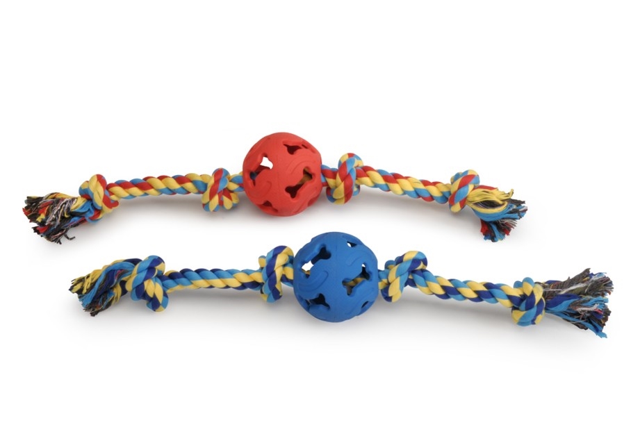 COTTON ROPE w/ RUBBER ball 76mm, approx.40cm
