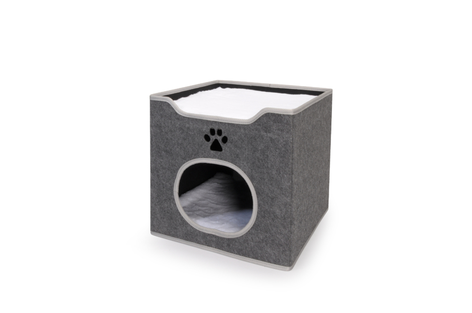 Cuccia CUBO per Gatti, feltro poliestere, Cuscini rimuovibili, 40x40x36cm