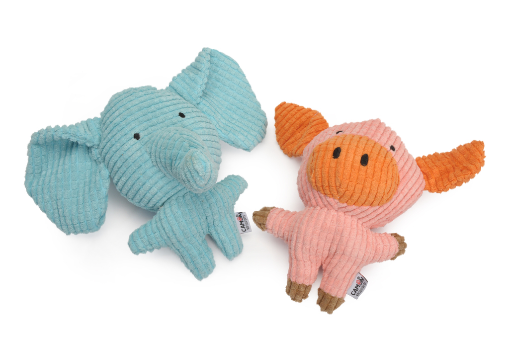 Dog toy, Piglet and Elephant in polyester with squeaker – 18 cm –