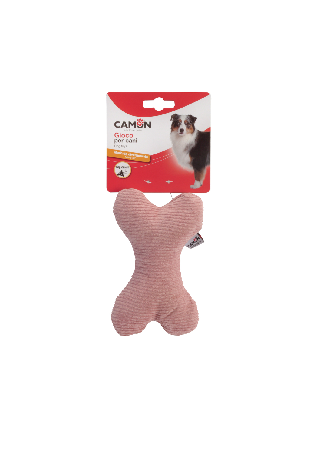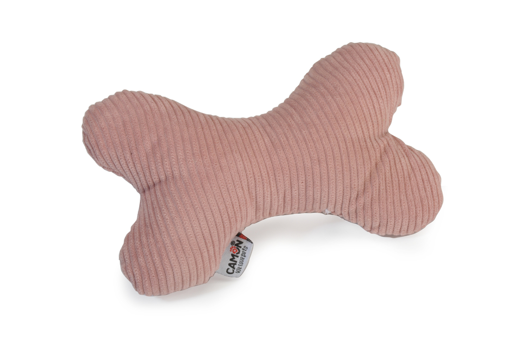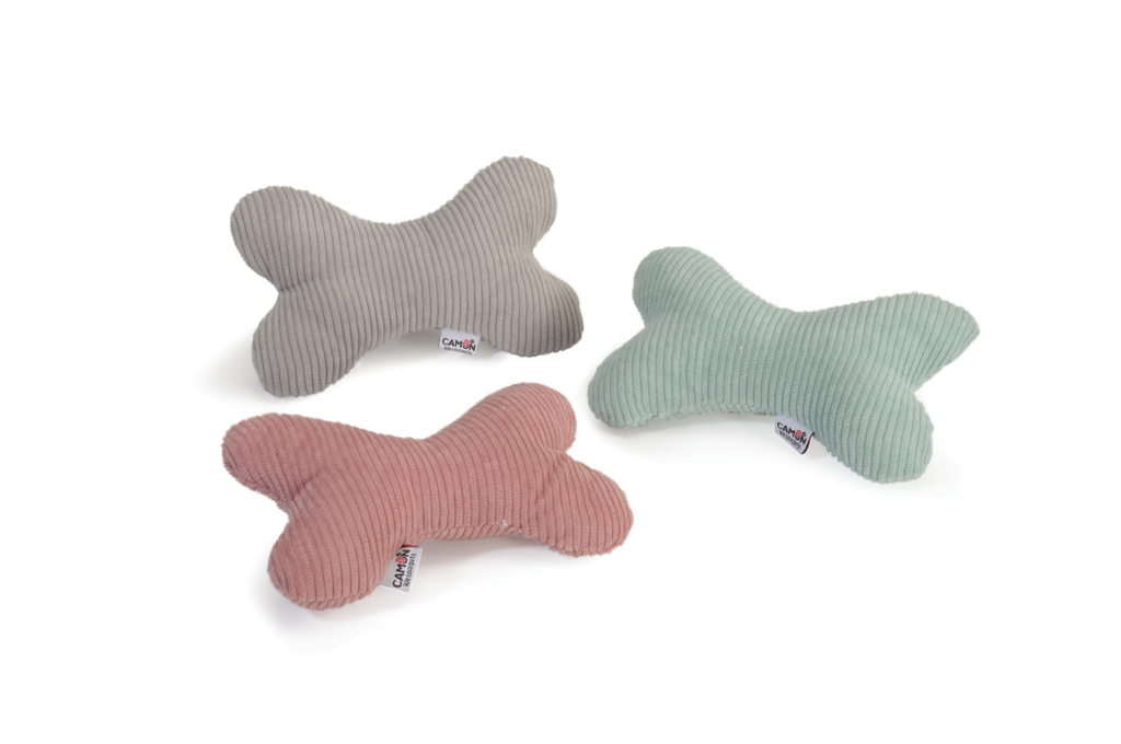 GIOCO Cane in poliestere, osso grigio+rosa+azzurro, c/Squeaker 15cm,