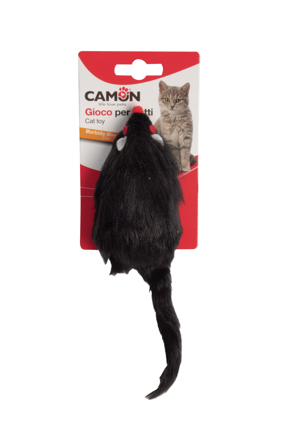 GIOCO Gatto in poliestere, tintinnante, Topo, 2 colori, Approx.20cm con coda,