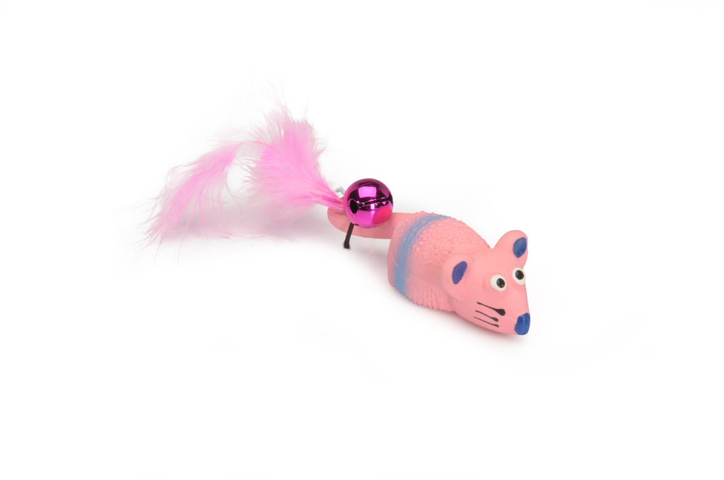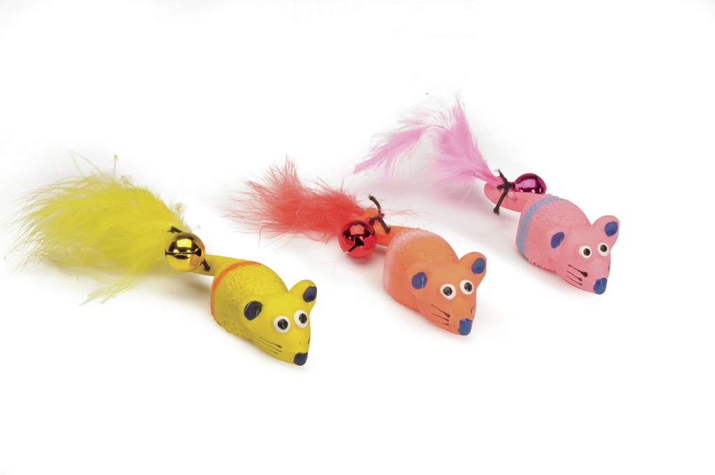 Latex cat toy, Mouse 3 colours, w/bell and squeaker, Approx.11cm,